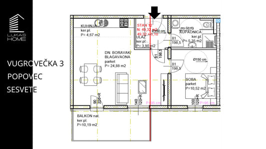 STAN 22 | 2. kat | 54,64 m² | Jedna spavaća soba
