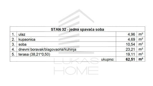 STAN 32 | Uvučeni kat | 62,51 m² | Jedna spavaća soba | Terasa