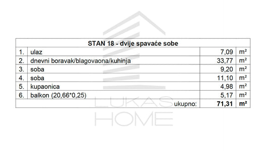 STAN 18 | 2. kat | 71,31 m² | Dvije spavaće sobe