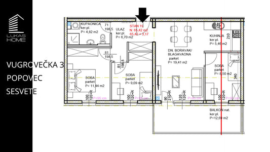 STAN 19 | 2. kat | 68,59 m² | Tri spavaće sobe