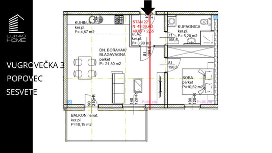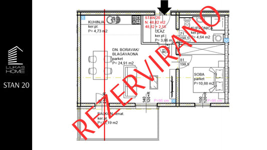 STAN 22 | 2. kat | 54,64 m² | Jedna spavaća soba