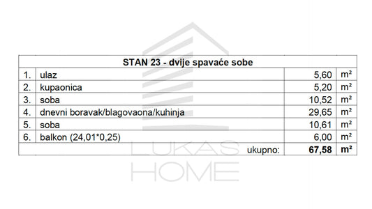 STAN 23 | 2. kat | 67,58 m² | Dvije spavaće sobe