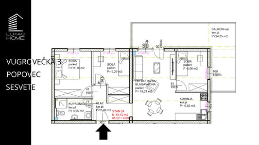 STAN 24 | 2. kat | 71,61 m² | Tri spavaće sobe